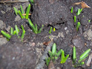 die sich das heruntergefallene Futter holen wollen.