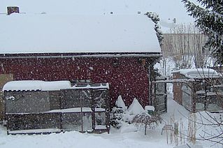 Wir haben einen extra Kasten mit einem kleinen Eingang gebaut,